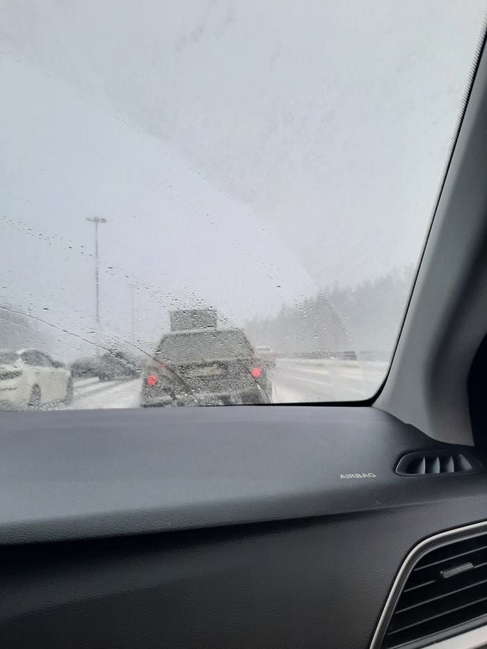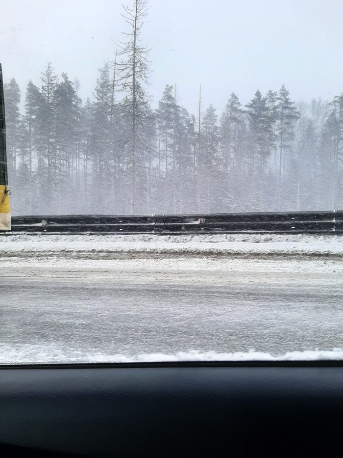 Ехала по Мурманскому шоссе в такси с очень добрым и терпеливым водителем. Была сильная снежная метель. По сторонам волшебный балтийский лес. Скидываю мужу фотки с пробками и метелью. Долго, но он не злится. Он держит меня и дарит мне эту возможность дышать. И я безгранично ценю это, ценю его.