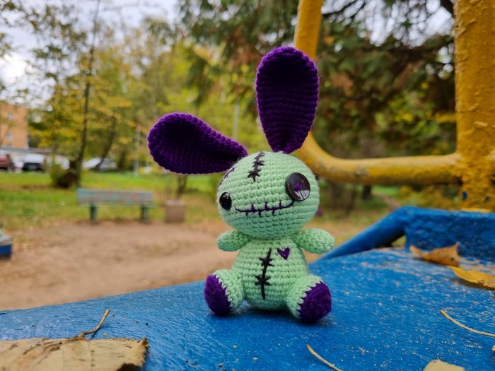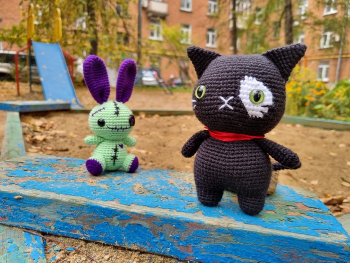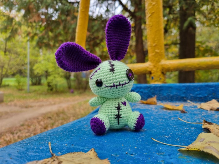 Из нюансов вязания я столкнулась с проблемой в виде отсутствия у меня маленьких черных пуговок для заек Вуду. Однако, на будущее, я уже успела закупиться интересными пуговками для зайчиков :3.
