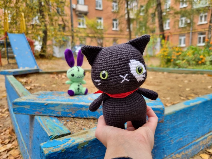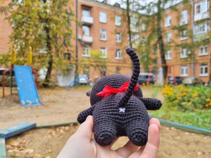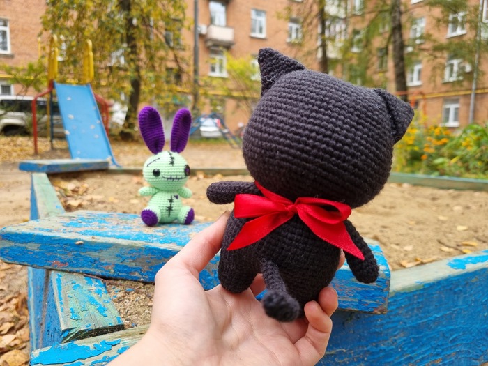 Также хозяйка заек попросила меня связать котика Инь, только "поменьше, чтобы его было удобно брать с собой".
