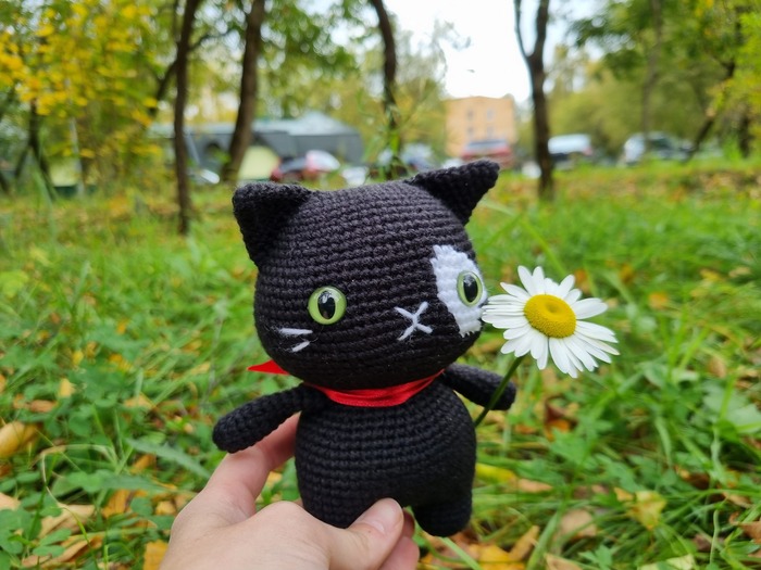 Вооружившись своей любимой "тонкой" пряжей «Пехорка «Детская новинка», я приступила к делу. По мне, котик вышел просто отличным. На самом деле, мне просто больше нравится, как выглядят маленькие аккуратные узелки на игрушках)