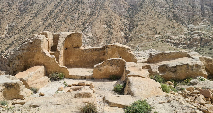 Чуть в стороне от основных достопримечательностей Петры на Гугл-картах даже обозначено место Скала Робертса. Ее художник тоже изобразил, вместе с каким-то строением на вершине, но другой информации не имеется: