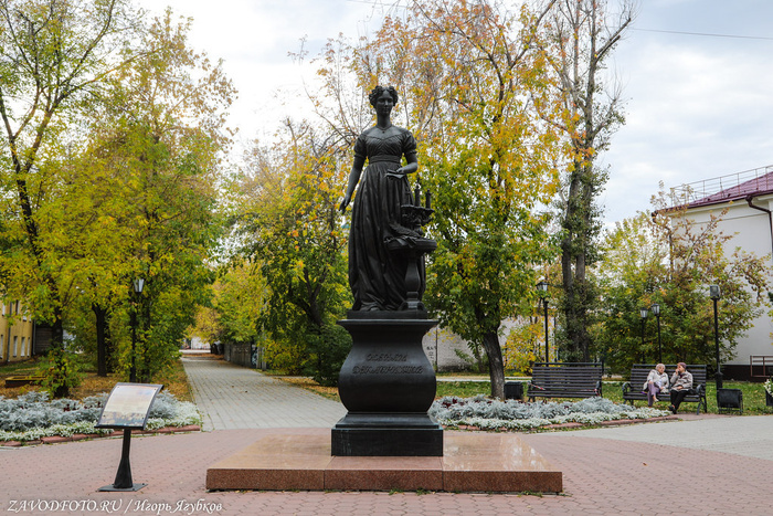 Памятник жёнам декабристов в сквере у дома декабриста Сергея Волконского. Скульптура изображает Марию Волконскую со стоящим у ее ног подсвечником с зажженными свечами. Его открыли 13 сентября 2011 года. Высота памятника - 3 метра. Высота памятника вместе с постаментом составляет 5,5 метров. Стоимость скульптуры - 17 миллионов рублей. Композиция установлена на деньги иркутского предпринимателя Виктора Захарова. Фигура была изготовлена из бронзы и изображает княгиню Марию Волконскую - жену декабриста князя Сергея Волконского, добровольно уехавшую в Сибирь со своим мужем, отправленным в ссылку. Монумент был создан в подмосковном городе Жуковский и доставлена в Иркутск ко дню празднования 350-летия города.