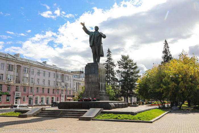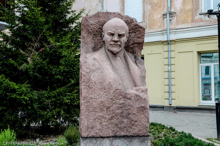 Памятник Ленину на пересечении улиц Ленина и Карла Маркса. Он сооружен в 1952 году. Сам монумент сделан из бронзы, отлит был в городе Ленинграде, пьедестал сделан из бетона, отделка плитами лабрадорита.