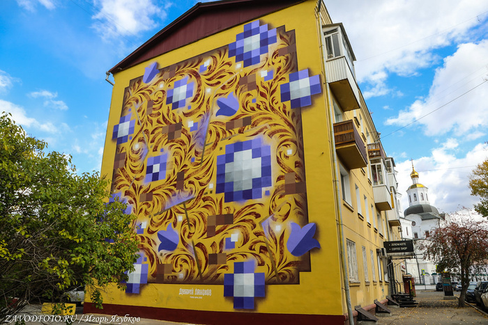 Масштабное панно «Интернационал» с полным текстом гимна, которое появилось на улице Пролетарская в 1967 году в год 50-летия Октябрьской революции. Автор проекта и руководитель группы художников - Анатолий Гетманский. Панно изготовлено из кусочков метлахской плитки.