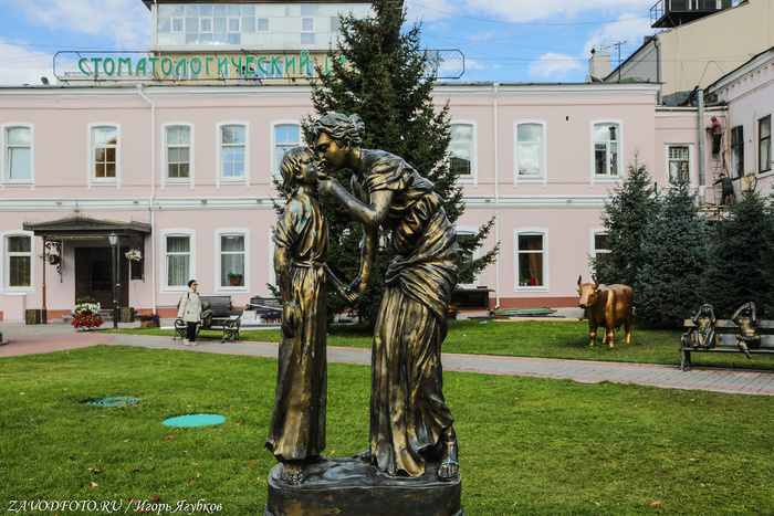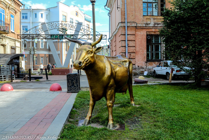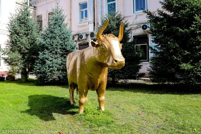 Обязательно зайдите во двор поликлиники № 2 на улице Ленина, 36. Тут можно сфотографироваться с золотой коровой и быком, а также увидеть и другие интересные скульптуры.
