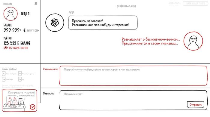 Виктор сидел перед монитором. В чат приходили сообщения от нейросети, которые нужно было обрабатывать как можно быстрее. Иногда нейросеть ставила лайки и кормила. А за плохие ответы рушила рейтинг и слегка била электричеством. В правом верхнем углу экрана светилась сумма в евро, которую Виктор заработал за этот квартал. Неплохая кстати по нынешним временам сумма, но…
