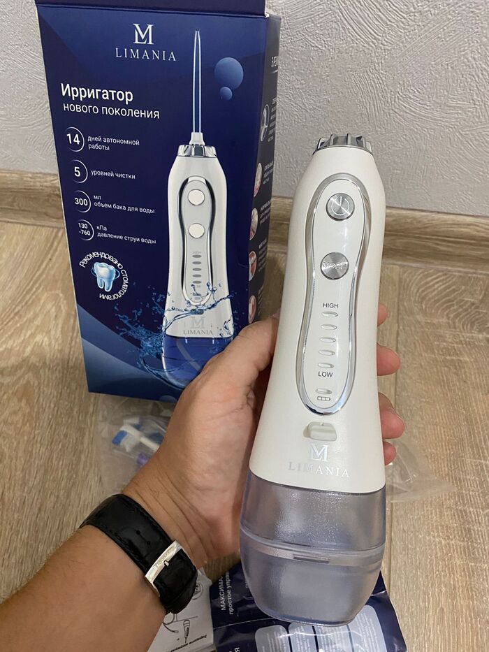 В знаменитых магазинах электроники цены на девайс оказались кусачими. Тут я вспомнила про Ozon. Выбор там не маленький, мой взгляд пал на портативный ирригатор для полости рта от бренда Limania/