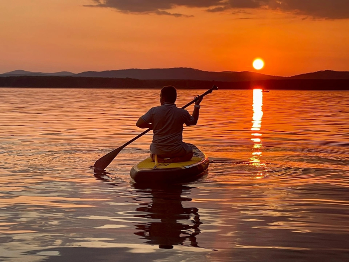 Одна из таких групп именуется "семь камней счастья". При текущем уровне воды в озере, видны шесть камней.
