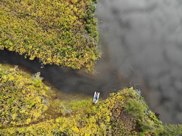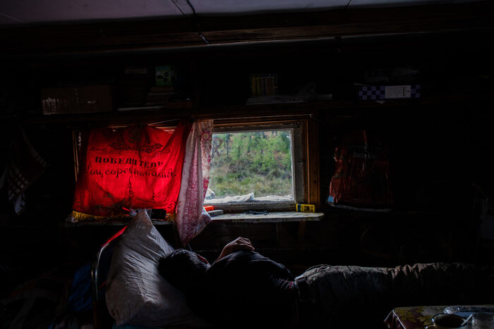 Не менее удивительными были ночлег и быт. Мы взяли с собой палатки и мини-печку, спальники и шкуры оленей, которые следует подкладывать под себя, и остановились в невероятно комфортных для тайги условиях — у местного отшельника Семен Семеныча и его сына Эскиля (они живут в шести часах езды на моторной лодке от ближайшего поселения). Как и большинство жителей Севера, жилье они строили самостоятельно, набрав материалы по заброшенным деревням в 150 километрах от дома. Семен Семенычу 66 лет, он один из десяти братьев и сестер и предпочитает восемь месяцев в году жить от них подальше, а возвращается в Казачье только на зиму.