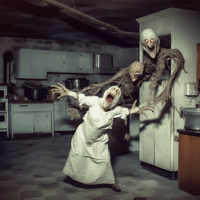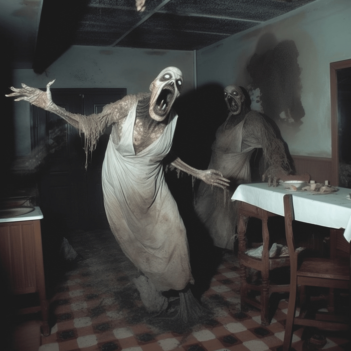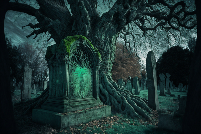 Затем с той же стороны налетел порыв ледяного затхлого воздуха и сразу же почти рядом со мной раздался пронзительный крик; он исходил из расколотого места упокоения человека и монстра. В следующее мгновение меня свалил удар чудовищной силы, нанесенный невидимым объектом громадных размеров и непонятной природы, и я растянулся на оплетенной корнями почве зловещего кладбища, а из могилы неслась такая адская какофония шумов и сдавленных хрипов, что мое воображение мгновенно заполнило окружающий беспросветный мрак мильтоновскими легионами безобразных демонов. Пронесся леденящий иссушающий вихрь, раздался грохот обваливающихся кирпичей и штукатурки, но прежде чем успел понять, что происходит, я милосердно лишился чувств.