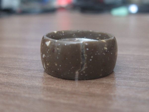 В посте про изготовление колечек из искусственного камня было довольно много вопросов к прочности получившегося изделия. Писали что "Если сжать, ломается как баранка". Я же тестировал эти кольца на прочность с силой кидая на бетонный пол-с ними всё было нормально, но наглядно показать прочность колец не представлялось возможным. И тут вдруг подвернулся отличный образец.