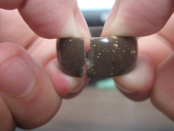 Трещина лопнула, но кольцо не развалилось. Руками даже лопнувшее с одной стороны кольцо не представляется возможным разорвать до конца.