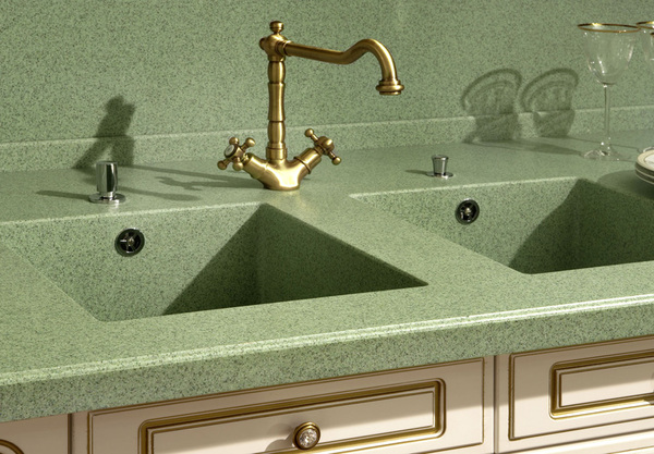 Из искусственного камня делают бесшовные мойки, встроенные в столешницу. Вы легко поймете, о чем я говорю, загуглив это (а кто-то уже понимает, о чем речь).