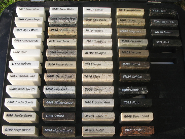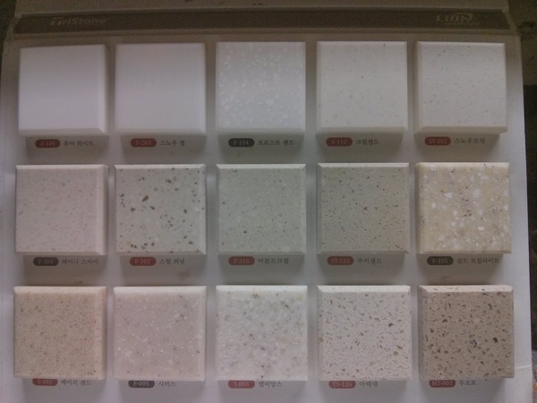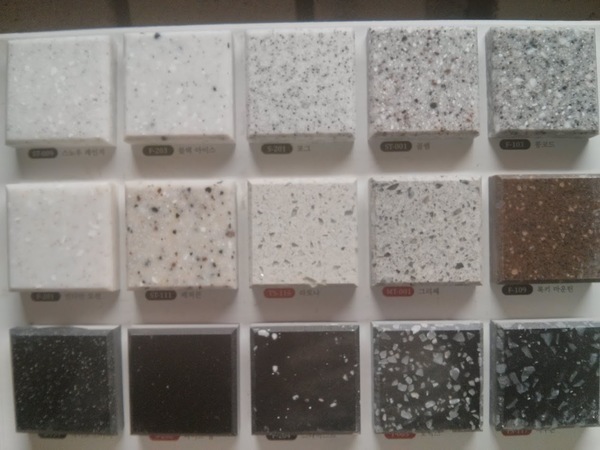 Особенностью этих цветов является полное отсутствие в их составе каких-либо вкраплений. Темные и насыщенные цвета несколько тверже из-за большего количества пигмента. Это сказывается на длительности полировки. При подготовке под склеивание насыщенных и темных цветов необходимо использовать новые фрезы, в противном случае есть вероятность получения белесого шва. Белые и близкие к белым цвета необходимо обезжиривать спиртом, в противном случае есть вероятность получить шов в виде темноватой полосы. На однотонных цветах шов может быть заметен на отблеск в виде тонкой волосяной ниточки.
