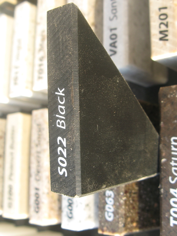Особенностью этих цветов является наличие в их составе крупных вкраплений. Эти вкрапления располагаются в толще листа ближе к лицевой поверхности. При изготовлении кромки необходимо выбрать четверть (фальц глубиной в половину толщины листа), чтобы на торцевой стороне столешницы не было видно мелкофактурной прослойки. Шов может косвенно подчеркиваться тем, что крупные вкрапления имеют ровный срез.