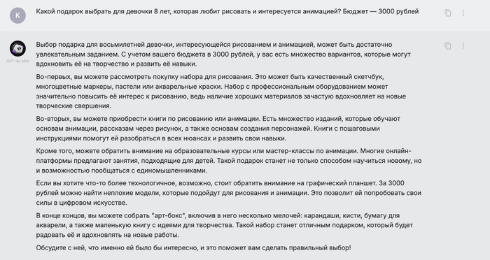Но на деле пускается в рассуждения и не даёт конкретного ответа. Школьника, написавшего сочинение про богатство природы, так не разоблачить.