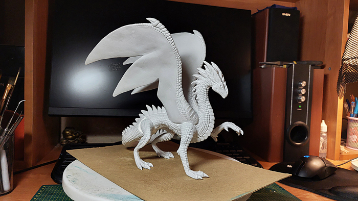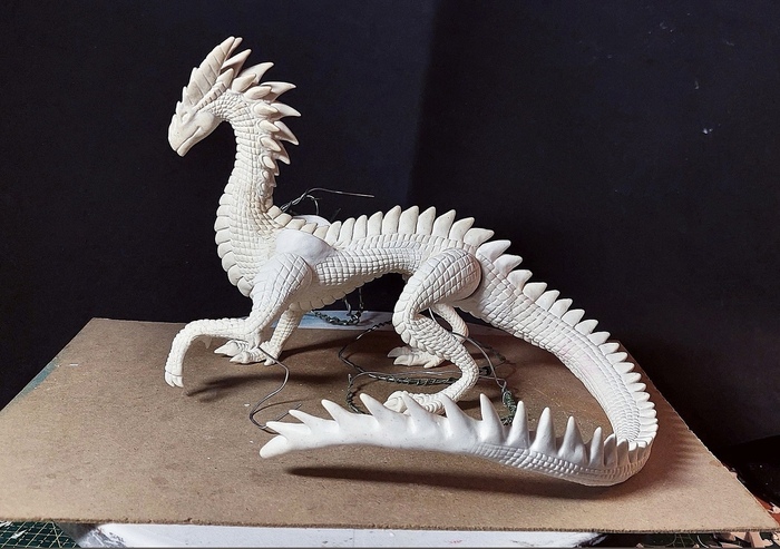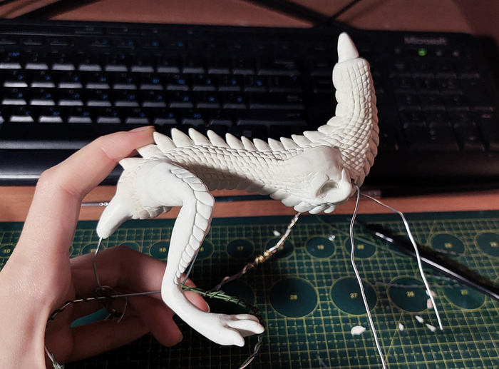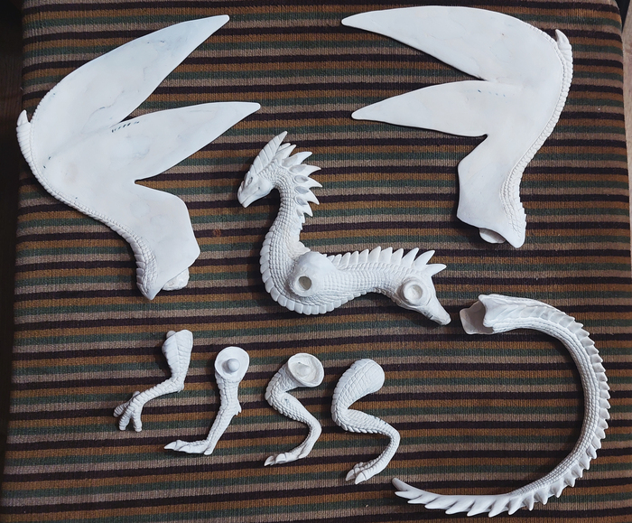 Когда сделала крылья, то отдала дракона в тираж. Очень ждала, когда можно будет начать собирать и красить. Пришлось отделить лапы и хвост от тела, чтобы получилось отлить нормально.