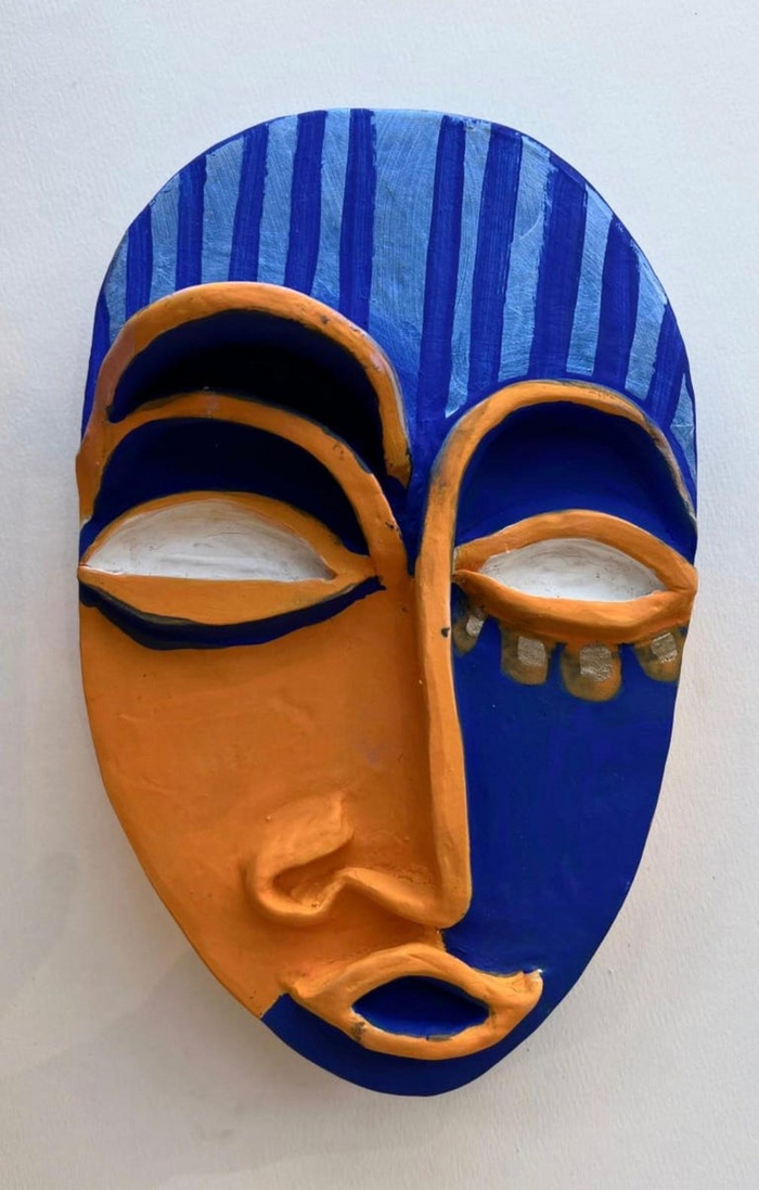 Современный художник: Ворогушин Алексей Геннадьевич. Девушка в неоновой маске в стиле киберпанк. ИИ художник