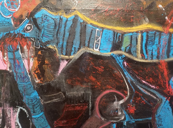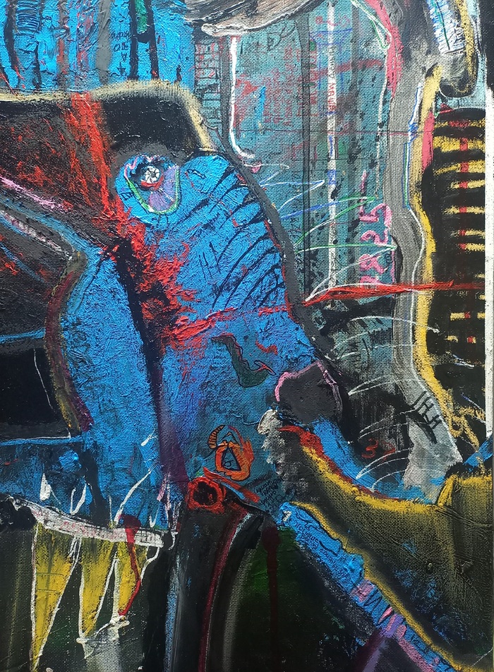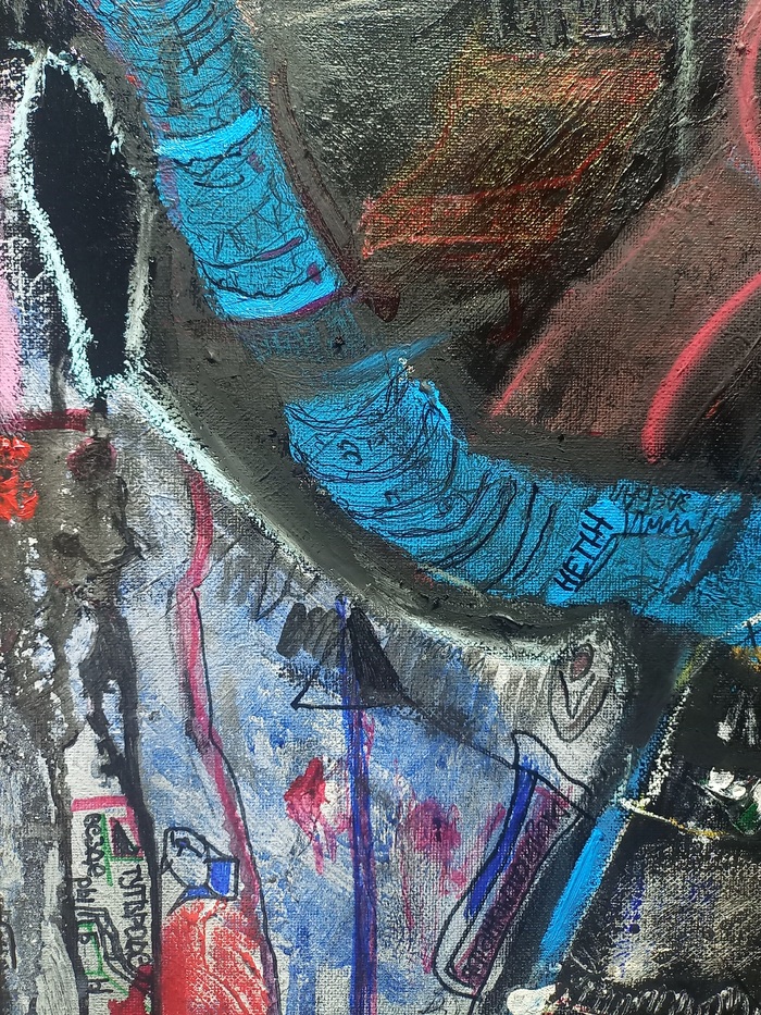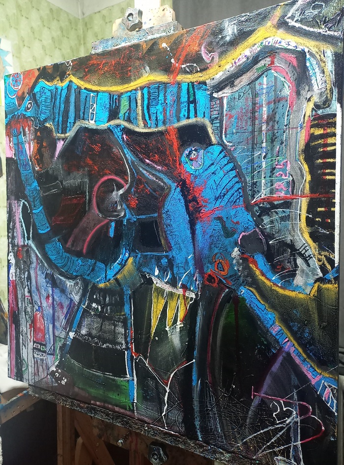 Кто-то знает меня по картинкам гаражей / грязи / машин , но мало кто хочет знать и мало кто принимает меня как абстракциониста , но порой я счастлив когда крашу такие вещи , здесь весь я и меня здесь больше чем в фигуративе