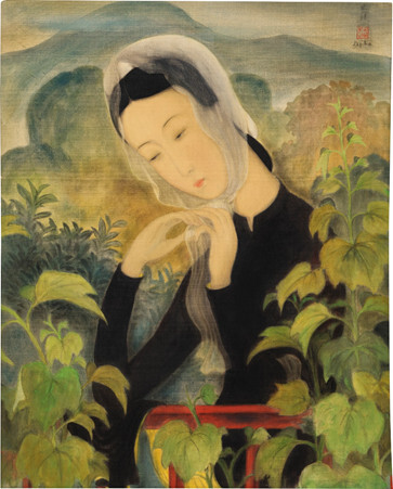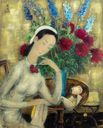 Работа Ле Фо "Девушка с пионами", написанная тушью и красками на шелке около 1945 года, изображает молодую женщину, одинокую и тоскующую по Родине. Она была продана на аукционе Aguttes 6 октября 2020 года за 1 миллион 360 тыс. USD. Эта работа, отражающая эмоциональные переживания тех, кто находится вдали от дома, выполнена в традиционной технике росписи по шелку с изысканной элегантностью. Мазки кисти грациозны и плавны, изображая молодую женщину с утонченностью, одновременно величественной и хрупкой.