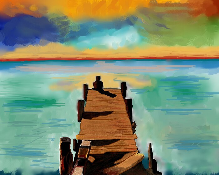 Деларош шаг за шагом убирал из эскизов всё лишнее — архитектуру, детали и даже крест из рук девушки, чтобы оставить нас наедине с этой водой и этим покоем.