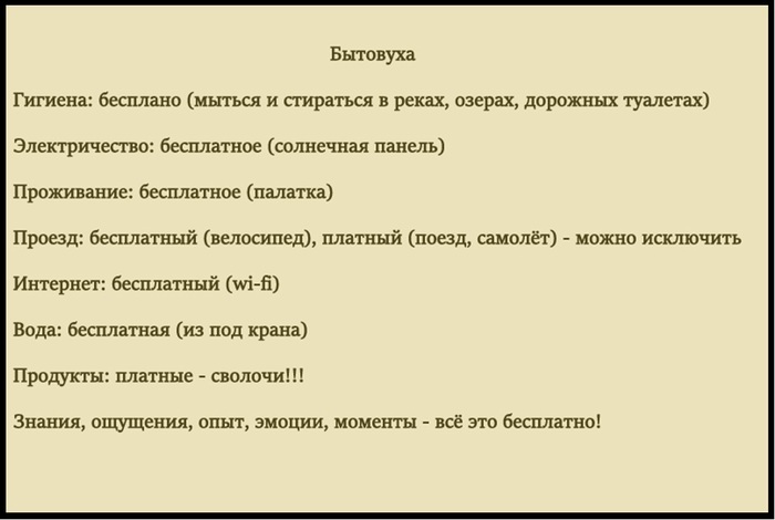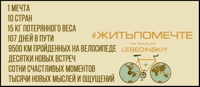 Потратил денег в общем, вместе с подготовкой(покупка велосипеда, палатки, авиабилетов, шенген визы и т.д.) - 82 тысячи рублей
