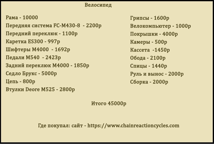 Никаких поломок у велосипеда за время путешествия не было, даже не проколол ни разу камеру)