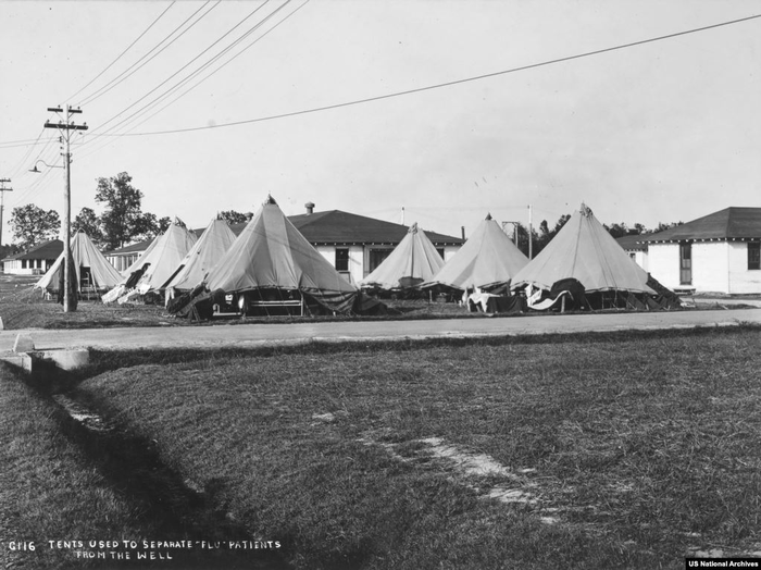 Палатки для больных "испанкой" в Арканзасе в 1918 году.