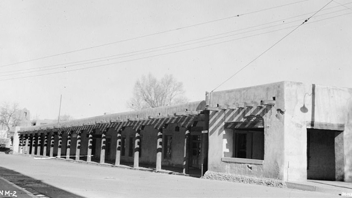 #3. Третьим в списке наистарейших жилых домов США - Палас Губернаторов построен в 1610 для первого испанского королевского губернатора как центр управления и жилые покои. Он прослужил в этом качестве при Испанской колонизации (1610-1821) и во время Мексиканской эры (1821-1846), и после формирования Нью-Мексиканской Территории (1848–1912). В 1912 территория была признана Штатом, но Палас закончил свое назначение губернаторской резиденцией в 1909. Здание знало и бурные времена. Несколько раз индейцы Пуэбло захватывали здание, например во время восстания (1680-1693), а также много позже во времена Конфедерации в 1862. Здание находится в историческом центре Санта Фе - столицы штата Нью-Мексико. Сейчас там музей, здание замечательно сохранилось. Стиль - Возрождение Пуэбло. Я сравнил винтажные и современные фотки снаружи, вообще без изменений.