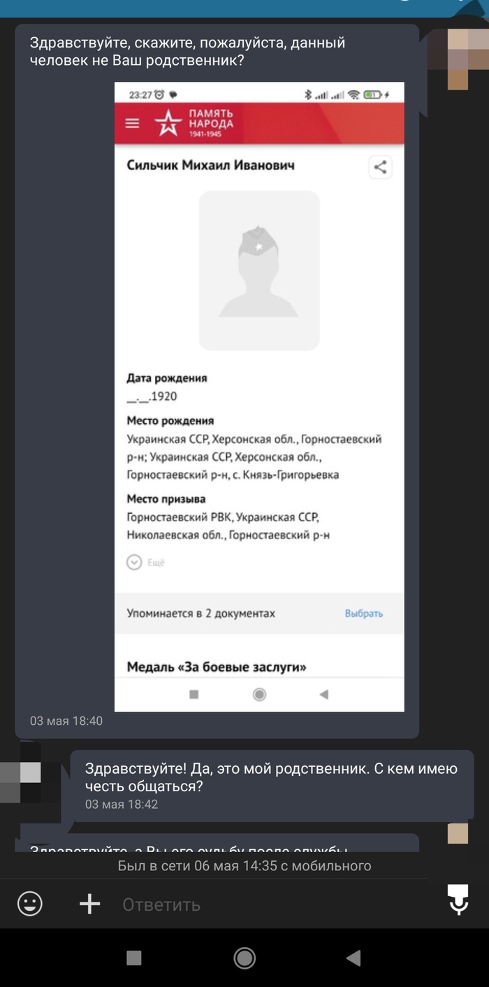 К такому я откровенно не была готова, но вот он. Тот самый потомок прадеда,которого я больше 15 лет хотела найти