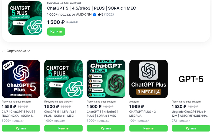 Если вы хотите подключить ChatGPT Plus, не тратя время на сложные обходные схемы, проще всего воспользоваться маркетплейсом ggsel. На этой площадке можно приобрести как подписку для уже существующего аккаунта, так и готовый профиль, в котором Plus уже активирован. Это избавит от лишних настроек и технических заморочек.