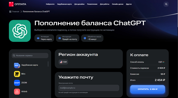 Процесс простой: заходите на сайт, выбираете тариф ChatGPT Plus, вводите свой e‑mail и подтверждаете оплату. После этого появится окно с QR‑кодом — его нужно отсканировать и завершить перевод через ваш интернет‑банк.