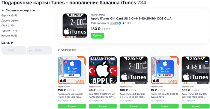 Если такой возможности нет, приобретите карту оплаты iTunes, подходящую к региону вашего аккаунта на ggsel. Активируйте ее в App Store и средства поступят на внутренний баланс. Теперь оплатите подписку с счета Apple ID.