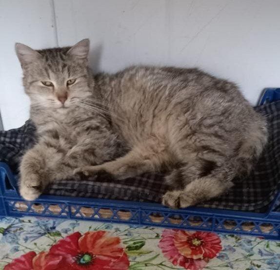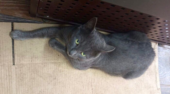 Великолепный серый кот (1 год). Настоящий красавец, аристократ, похожий на метиса русской голубой. Спокойный, величественный, он был местным "принцем".