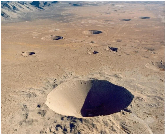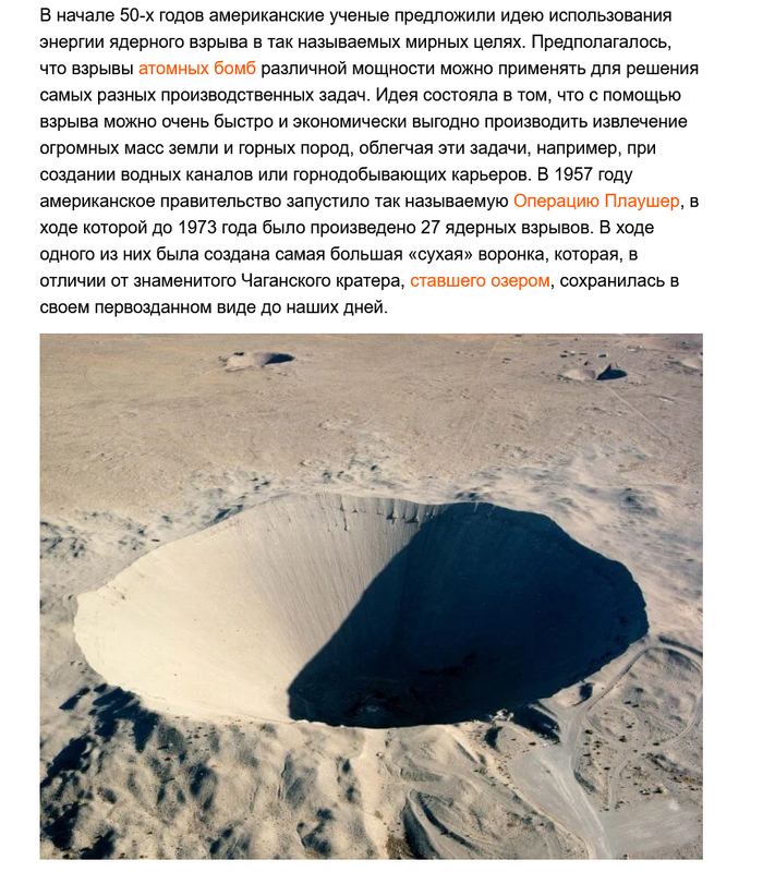 Неглубокая воронка после наземного контактного ядерного взрыва РДС-6с мощностью 400 кт на высоте 30 метров