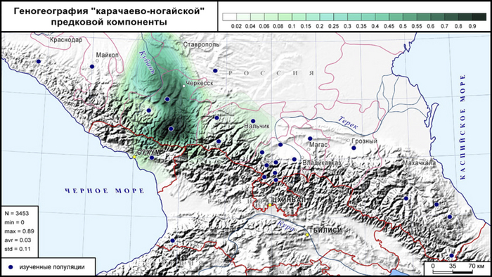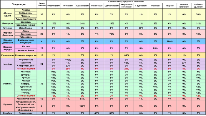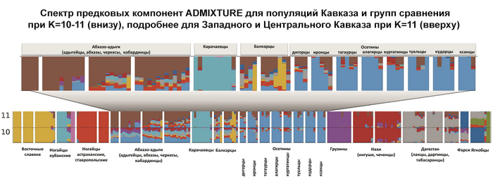 Это указывает на явную связь с европейскими неолитическими популяциями, как собственно и было показано в предыдущих исследованиях. Однако эти же образцы также демонстрируют присутствие компонентов восточных, кавказских и западных охотников-собирателей. Лишь один образец (I3151), по-видимому, не имеет предков восточных/кавказских охотников-собирателей.