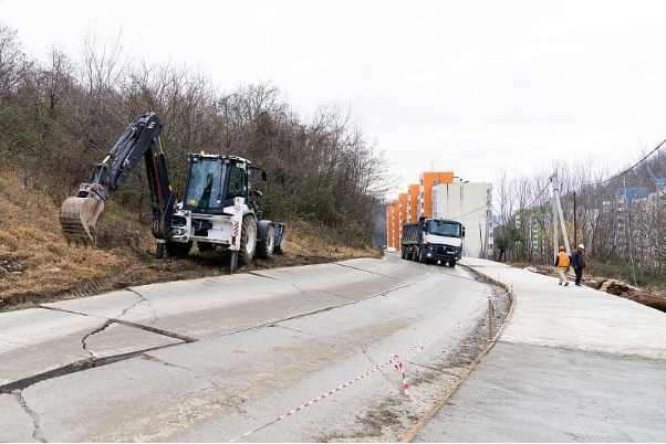 Так по улице Тепличной оползень привел в негодность участок дороги 150 метров, для удобств жителей и приезжих ремонтники сделали вспомогательную дорогу, а поврежденная будет восстановлена в течение двух месяцев.