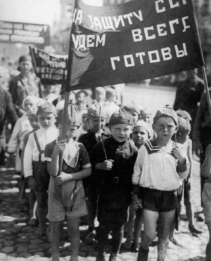 Сотрудников, то есть моих родителей, любезно пригласили от профкома пройтись по Красной площади с плакатами.