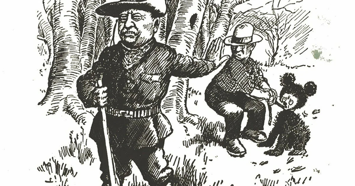 В Бруклине владелец кондитерской Моррис Михтом увидел в карикатуре не просто образ, а возможность. Он попросил жену сшить пару мягких медвежат. Поставил их в витрину. И назвал их Тедди в честь президента: Teddy Bear.