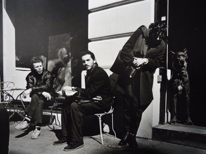Франция, г. Париж. Аньес. 1989 г. Сидят за столиком (слева направо): художники Олег Котельников и Гоша Острецов, стоит Аньес.