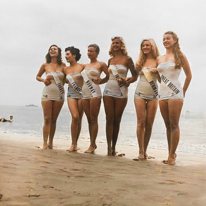 Собрал и раскрасил фотографии с конкурсов красоты, которые проходили в XX веке. Первый официальный конкурс красоты прошёл в Бельгии в 1888 году. Его успех привел к тому, что в начале XX века подобные мероприятия стали проводить и в других странах.