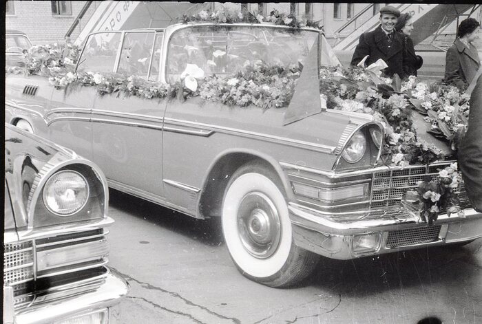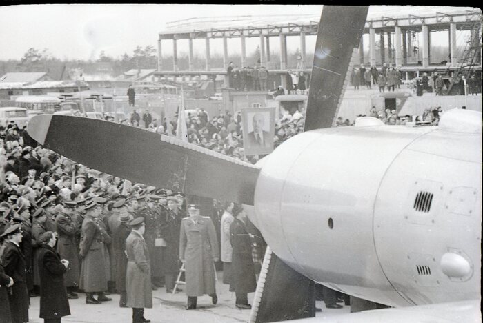 Встреча космонавтов Павла Беляева и Алексея Леонова на аэродроме Внуково после успешного завершения полета на космическом корабле «Восход-2».
