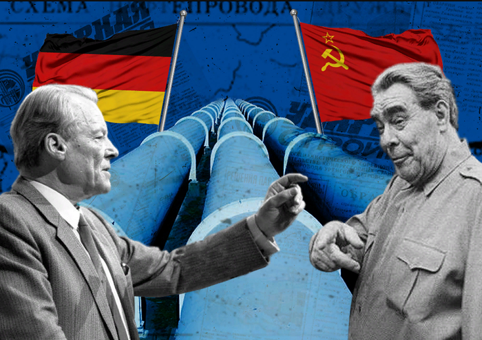 И уже с 1 октября 1973 г. стартовали поставки газа в ФРГ, объёмы которых год от года нарастали, в синхронно дополнительным западногерманским кредитам и растущими поставками из газо-экспортного оборудования, согласованным в ходе упомянутого визита Брежнева в Бонн. Кроме того, в начале 1970-х партнёры с берегов Рейна добились согласия Москвы на то, чтобы советские газопоставки осуществлялись бы не через Белорусскую ССР, социалистическую Польшу и ГДР, а через Украинскую ССР и Чехословакию. Можно предположить, что делалось это с дальним прицелом…