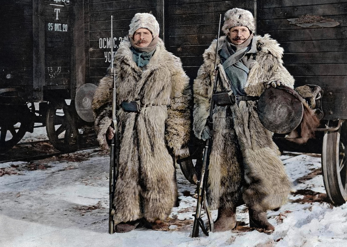 Чешские легионеры охраняют поезд в Сибири, 1918 год.