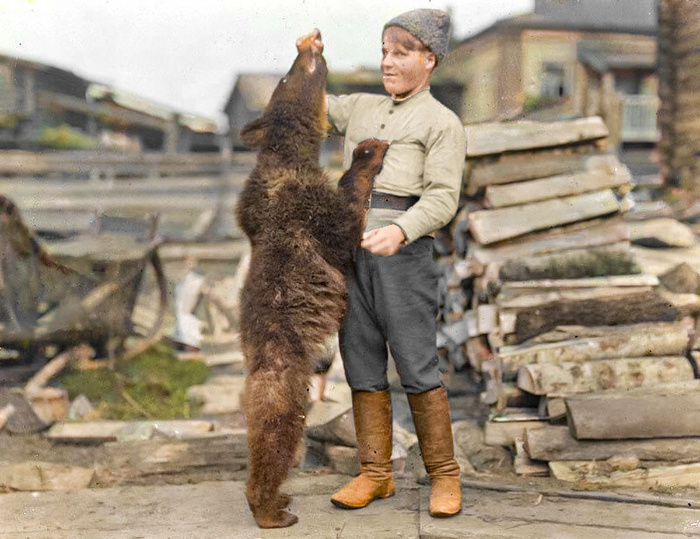 Медвежонок-талисман батальона Лапинского, Троицко-Печорск, Архангельская губерния (ныне на территории Республики Коми), весна 1919 год.