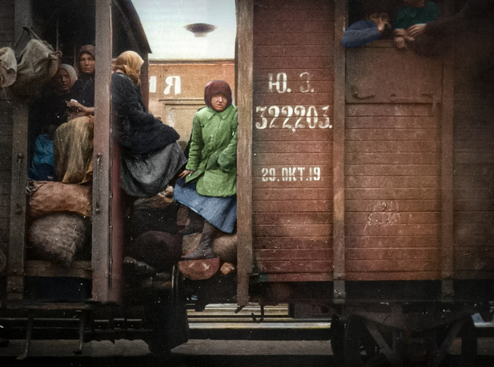 Мирные жители спасаются от Гражданской Войны в России, 1919 год.