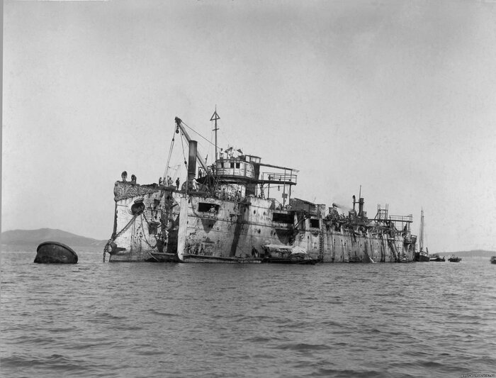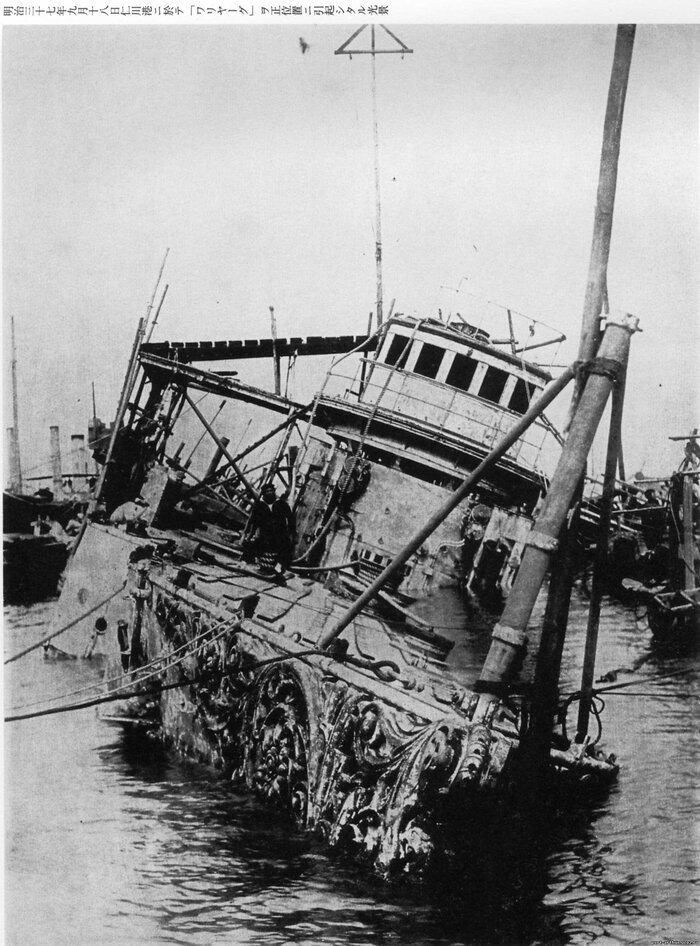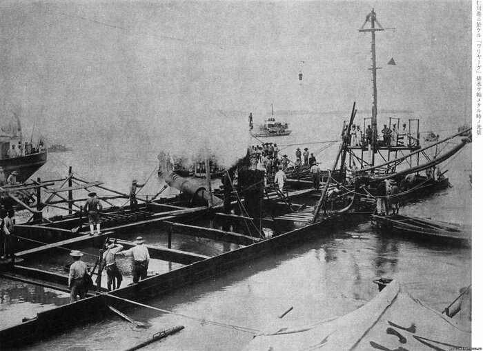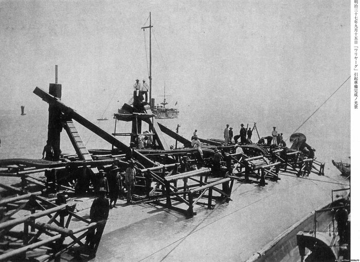 Далее идут фотографии подъёма японцами затопленного крейсера "Варяг".