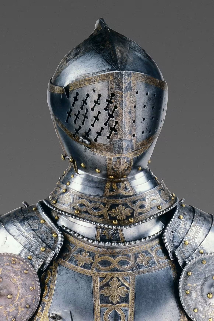 Ганс Кристоф фон Пиенценау (умер в 1577 году) пожертвовал доспехи в качестве приношения церкви, где находилась могила его семьи. Скромный декор доспехов из широких орнаментальных полос позолоты типичен для южногерманских доспехов того времени.