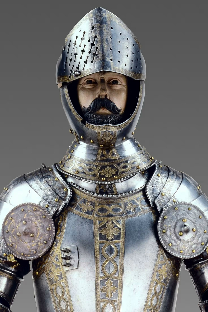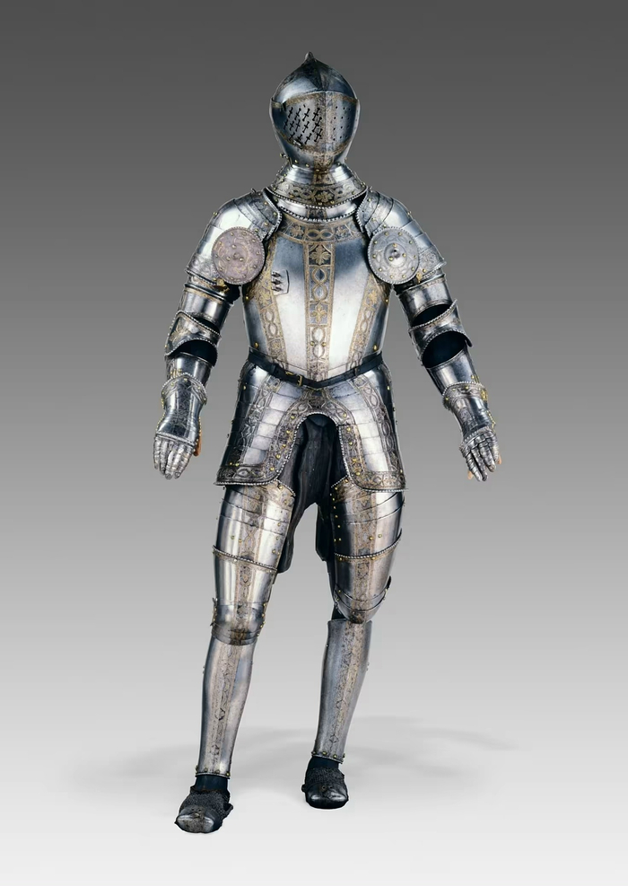 Доспехи на деревянных фигурах этого периода встречаются крайне редко и известны лишь по нескольким старинным арсеналам. Веками эта деревянная фигура в доспехах стояла, словно безмолвный страж, в приходской церкви Петерскирхена близ Дитерсбурга в Нижней Баварии.