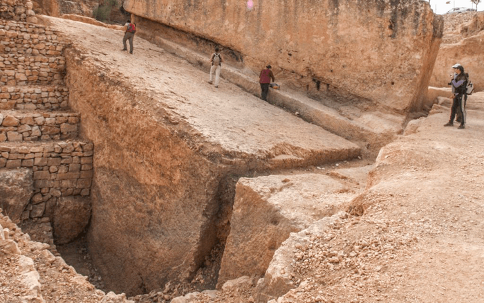 Рядом с ним находятся другие гигантские блоки, но они также остались в каменоломне.